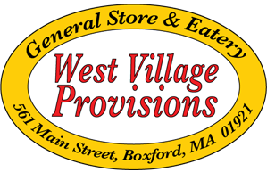 West Village Provisions is a general store and eatery in West Boxford, MA. We have a little bit of everything, as a general store should. We offer muffins, gourmet coffee and tea, breakfast, lunch, soups and take-home meals, all made fresh in-house with quality ingredients. We carry local eggs, milk and bread. We sell groceries and specialty foods, many of which are local, all- natural, organic, or gluten-free. We sell gifts, supplies, candy, local art, newspapers, greeting cards, fishing tackle, kitchenware, candles, toiletries, seasonal items, toys, and more!